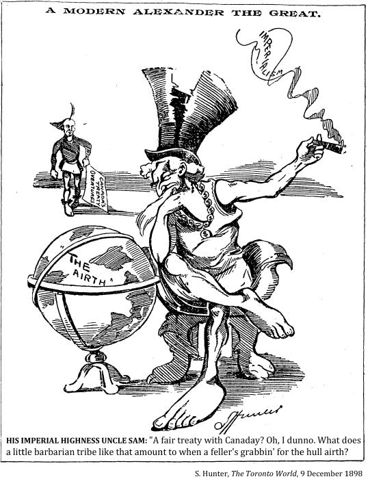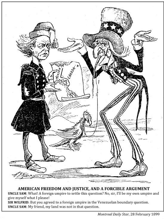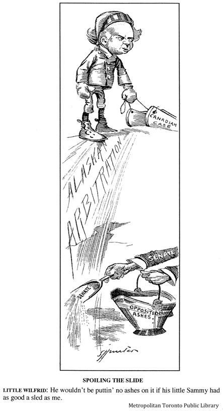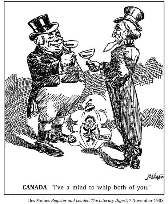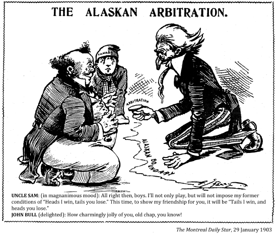 "Canadians are becoming weary of negotiating with Washington through London, and of the solemn and elaborate farces called arbitration which for one hundred and twenty years have been robbing Canada to enrich the United States."