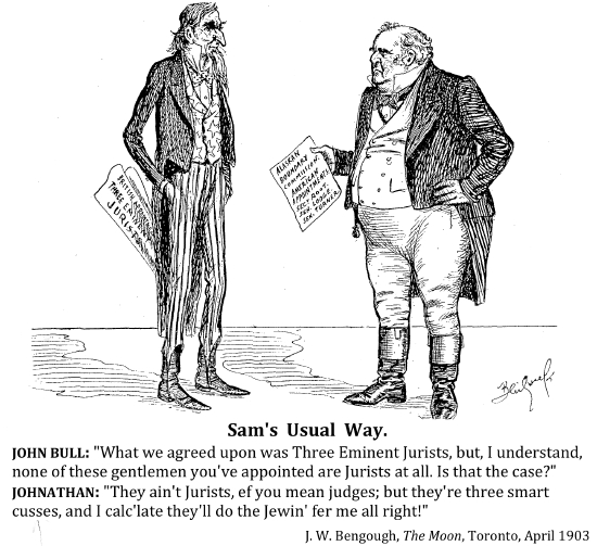 "[The Downing Street decision represented] the most cold-blooded case of absolutely giving away our interests . . . My view in watching the diplomacy of Great Britain as affecting Canada for six years is that it may just as well be decided in advance that practically whatever the United States demands from England will be conceded in the long run."