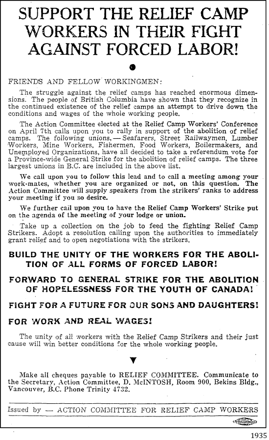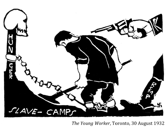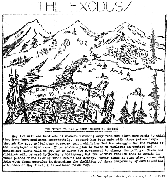 "The strike is evidence that herding jobless citizens into isolated camps, putting them under something like military rule and discipline and paying them 20 cents a day for doing occasional jobs is a first class method of making converts for the Communist party."