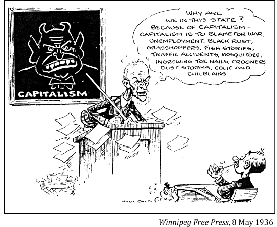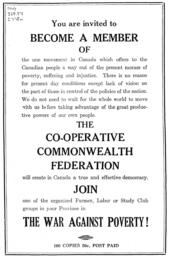 "We do not believe in change by violence. We consider that both the old parties in Canada are the instruments of capitalist interests . . . who finance them."