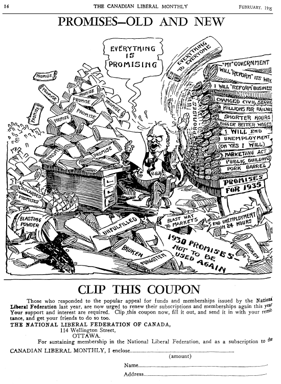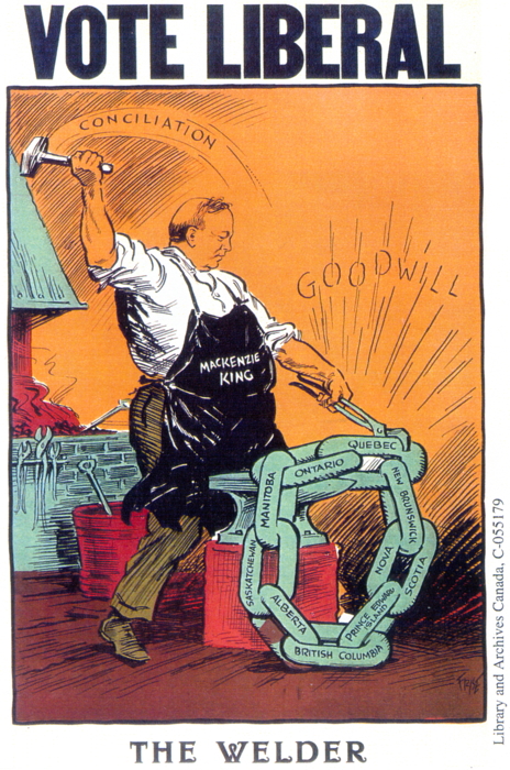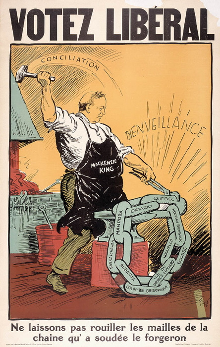 1930 VOTEZ LIBÉRAL - Ne laissons pas rouiller les mailles de la chaine qu'a soudée le forgeron. LAC, Acc. No. 1996-76-13, Jimmy Frise 1930