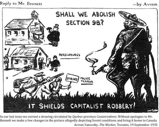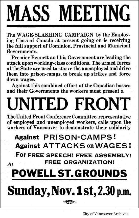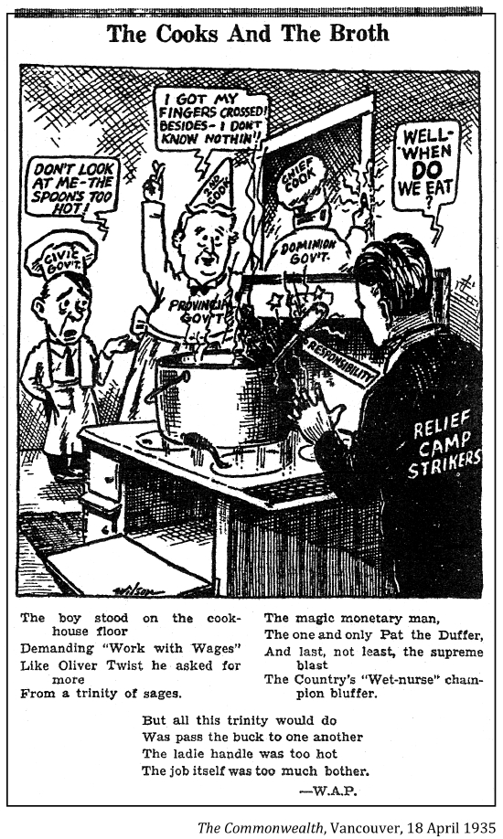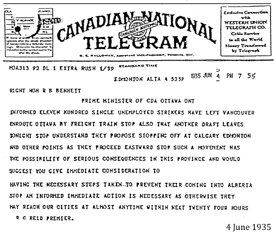 "You [R. B. Bennett] referred to us as not wanting work. Give any of us work and see whether we will work. This is an insidious attempt to propagandize the press on your part, and anybody who professes to be premier and uses such despicable tactics is not fit to be premier of a Hottentot village."
