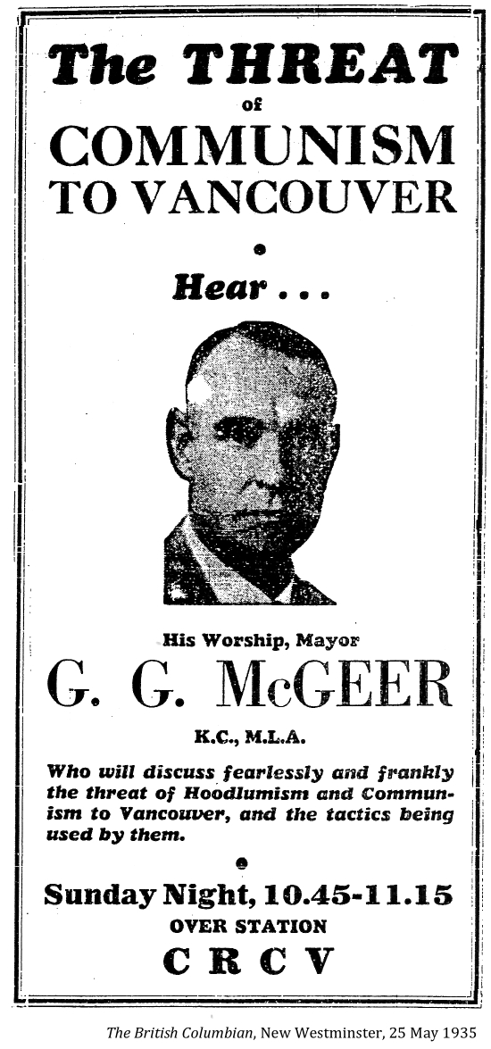 Mayor Gerry McGeer read the riot act on 23 April 1935