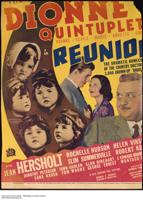 1936 Poster of the Dionne Quintuplets Reunion. LAC, R1300-1397 20th Century Fox 1936
