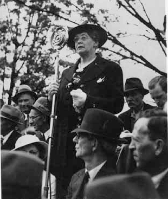 Helena Gutteridge speaking to a crowd of people during the Post Office and Art Gallery sit in. 1938, Vancouver Public Library 13333