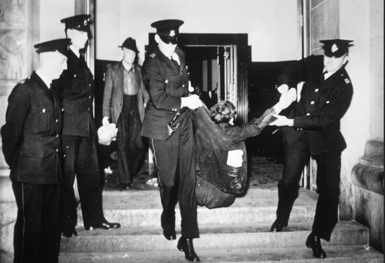 Post Office sit-in [police removing man from building], 1938, City of Vancouver Archives AM1576-S6-12-F47-- 2011 -010.1695