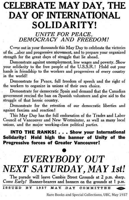 Communist Party members at a May Day march. 1935?, Vancouver Public Library 8787