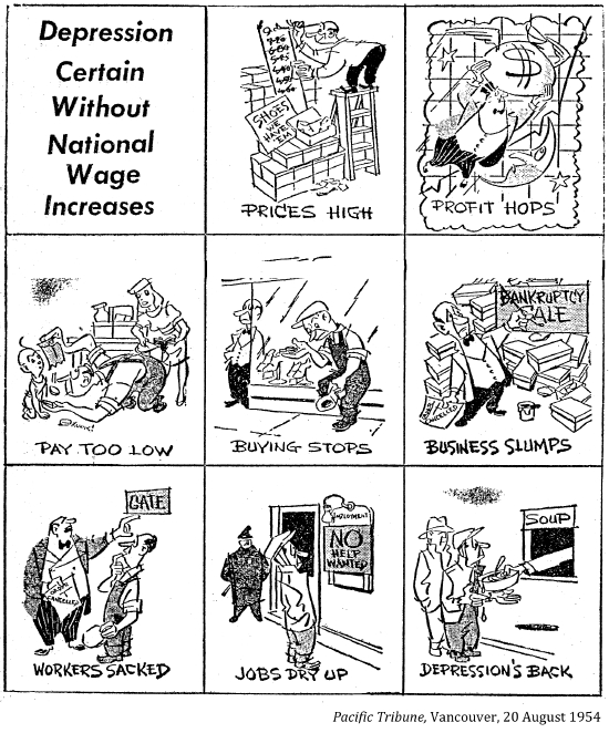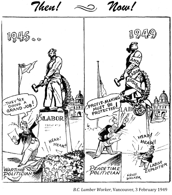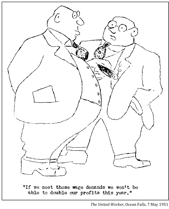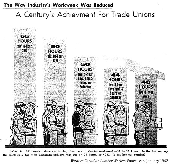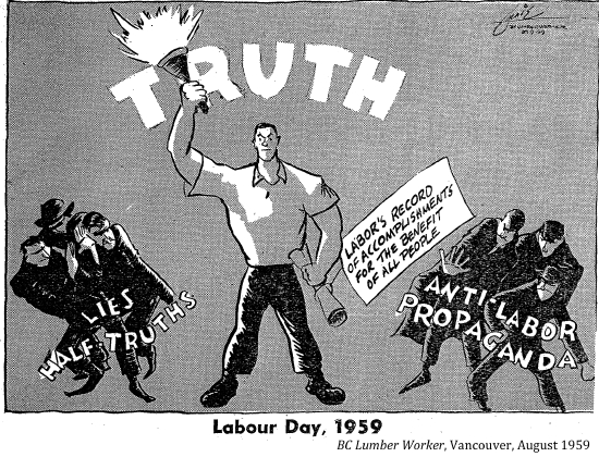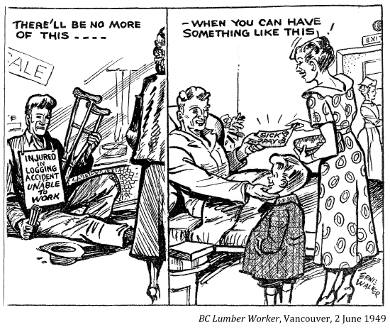 "Before many weeks [in 1919-20] their numbers [Lumber Workers' Industrial Union] had grown so that they began to tell the bosses things. They raised wages; they established the eight-hour day; they compelled the boss loggers to tear down the old disease-breeding shacks and build new ones with shower baths and drying houses; they made companies put in beds for every man; they forced the government to enforce the sanitary regulations already in the statute books; they filled the camps with working class literature and raised the general level of comfort and intelligence of the men who worked in the woods."