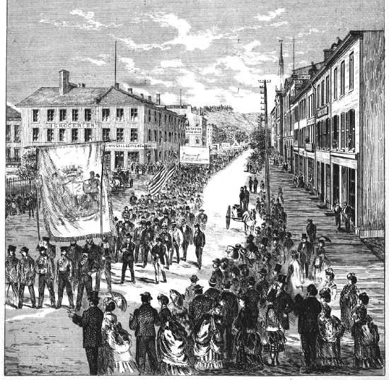 1872 Hamilton - Procession of Nine-Hour Movement Men. LAC, C-058640, Canadian Illustrated News, 8 June 1872