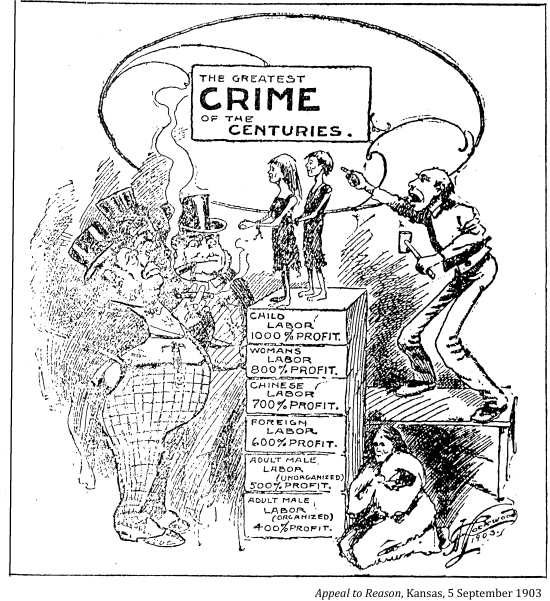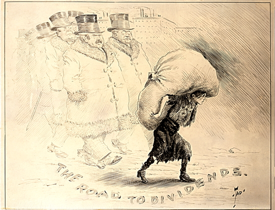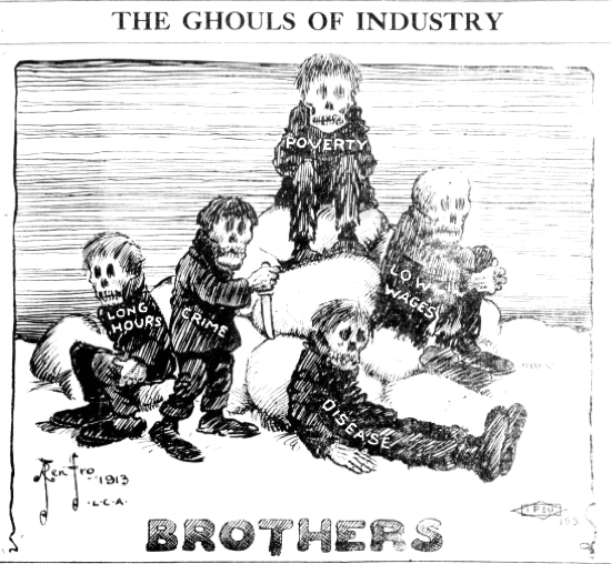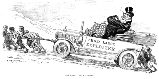 The road to dividends child labour cartoon, Lewis Wicks, 1913, Library of Congress, Public domain, via Wikimedia Commons