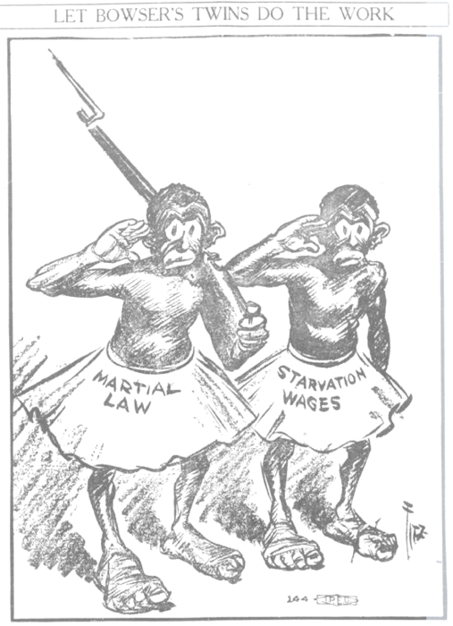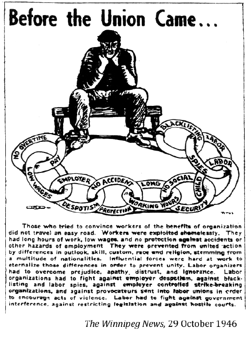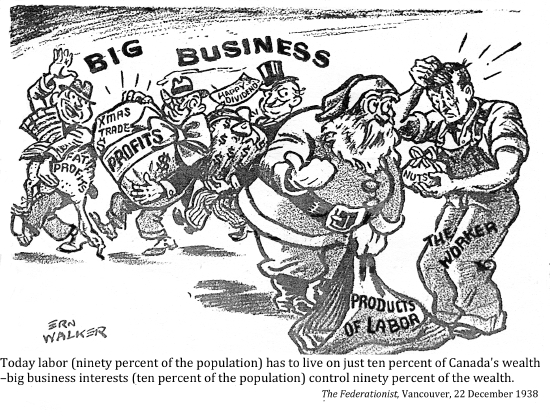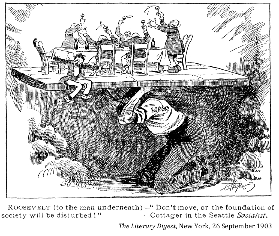 "In the hardrock mines and the lumber industry the story was the same. Long hours, low wages, a high-ball system of speedup, utter disregard for safety conditions and an uniform hatred and opposition to trade unionism. . . Previous to 1919 [lumber workers were] at the mercy of their bosses who were exploited by the most grasping and greedy plunderbund that was ever let loose on the natural resources of this or any other country. The life of the logger was worse than chattel slavery. From dark to dark, 10, 12, and 14 hours of slavish, backbreaking soul-destroying labor; the vilest of food. . . overloaded bunkhouses with vermin-infested, muzzle-loading, double-deck bunks, three decks in some cases, and for which the logger had to pack his own blankets; no sanitary conditions or wash-houses; swindled and robbed by employment sharks, grafting foremen and the steamboat companies."