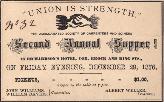 Amalgamated Society of Carpenters and joiners, Canadian District, TRL 1876. Union.VSB