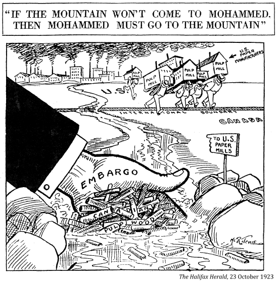 "We have been content since 1922 to send out of Canada into other lands, free, the resources of the country and bring back from them the manufactured materials. Thousands in the United States have been given employment fabricating Canadian goods. They've got the jobs and we've got the soup kitchens."