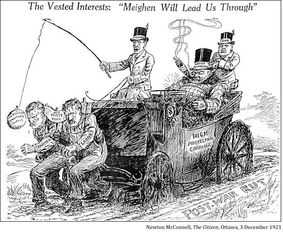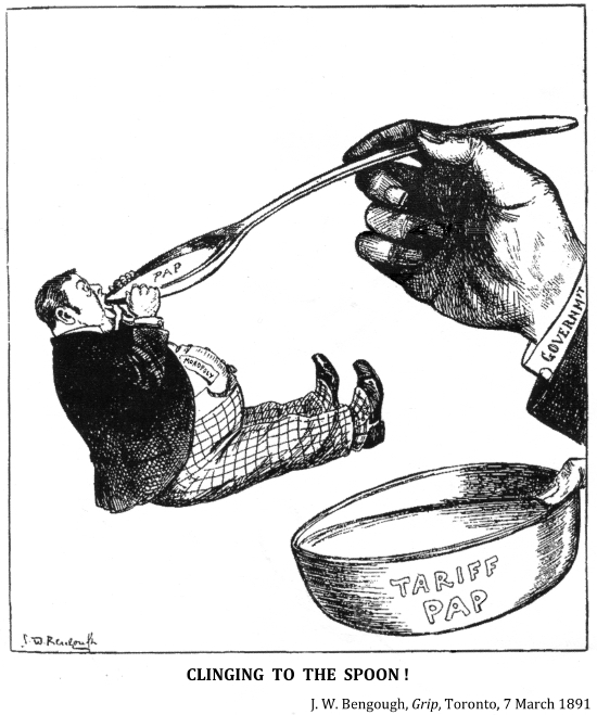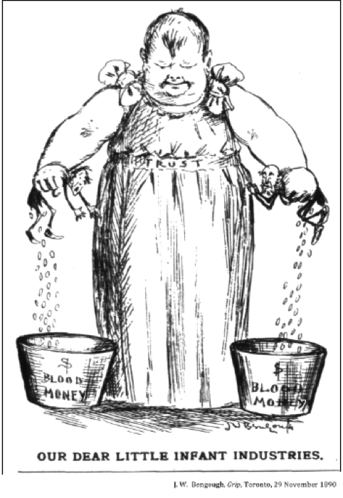 "Macdonald used the high tariffs of the National Policy to create a partnership with a host of manufacturing firms whose survival depended on having ongoing protection supplied by a friendly government in Ottawa. . . Laurier was well steeped in the view that Macdonald's National Policy had unconsciously raised the cost of living to subsidize a privileged manufacturing class."