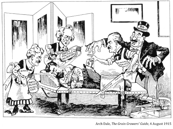 "When the workers of Canada wake up they will find that Protection is only one among the several economic fangs fastened in their "corpus vile" by the little group of railroad men, bankers, lumbermen and manufacturing monopolists who own their country."