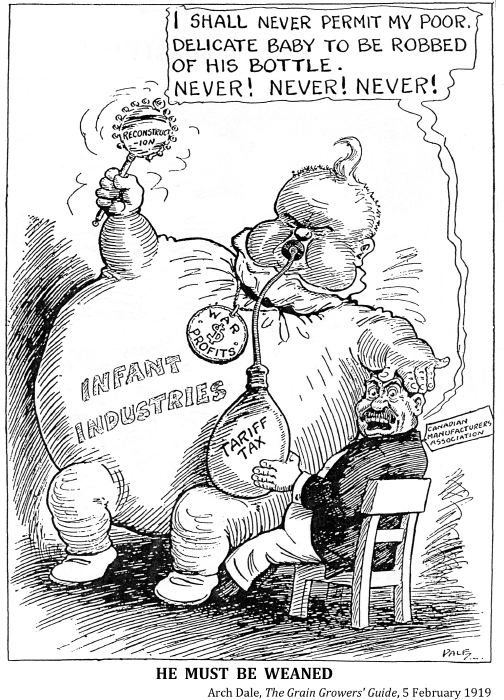 "Quebec and Ontario conceived the idea of having colonies . . . in which they could sell their manufactured goods under protective tariff."