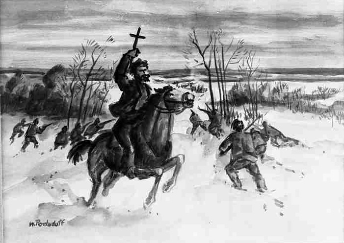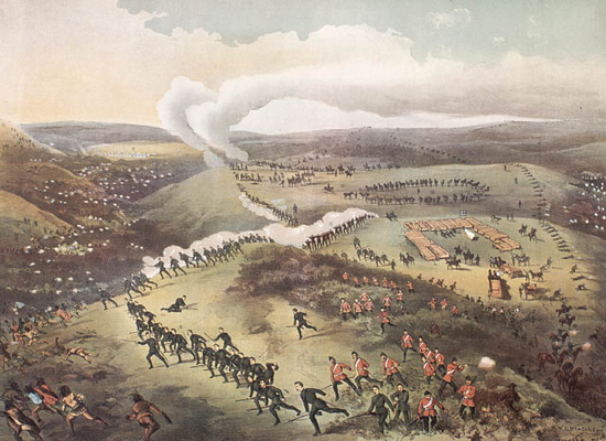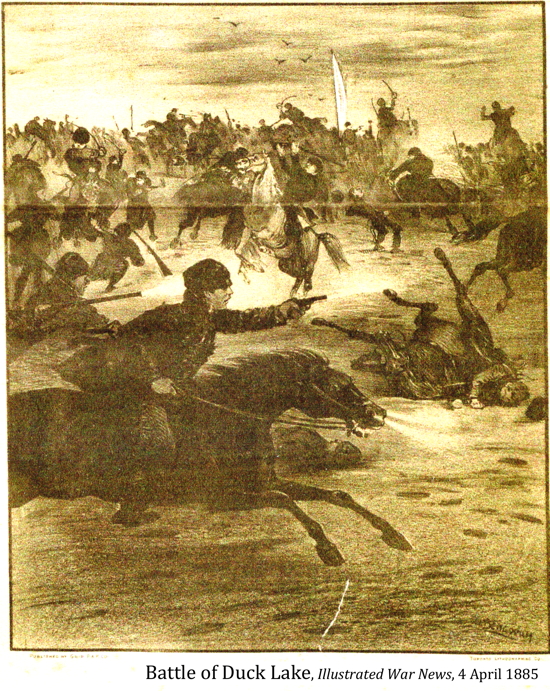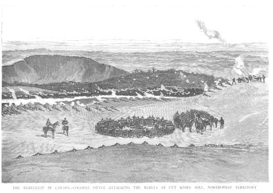 [Riel actually held up a cross during the battle]
