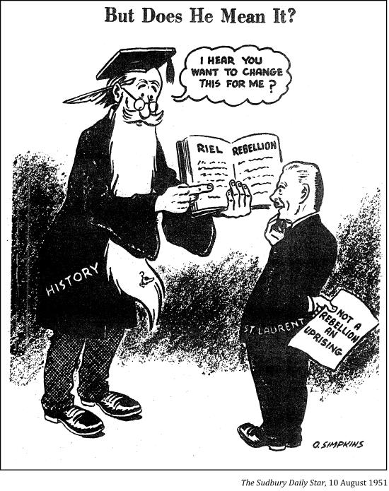 "Louis Riel had at his command no effective means by lawful methods to persuade the government of Canada to respect the rights and wishes of his Métis people. No representative or democratic government existed in the North-West Territories in his time. Herein lies the only possible justification for his outrageous acts of violence."