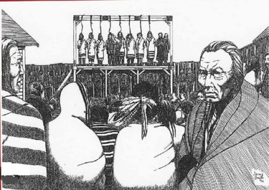 [The largest mass hanging in Canadian history occurred when eight warriors were executed in Battleford in November 1885.]