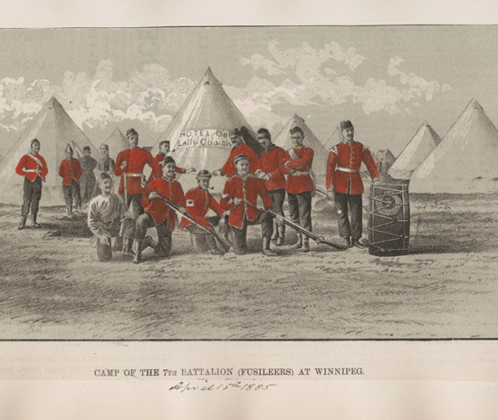 Camp of the 7th Battalion (Fusiliers) at Winnipeg. LAC Acc. No. 1933-242-48, 15 April 1885