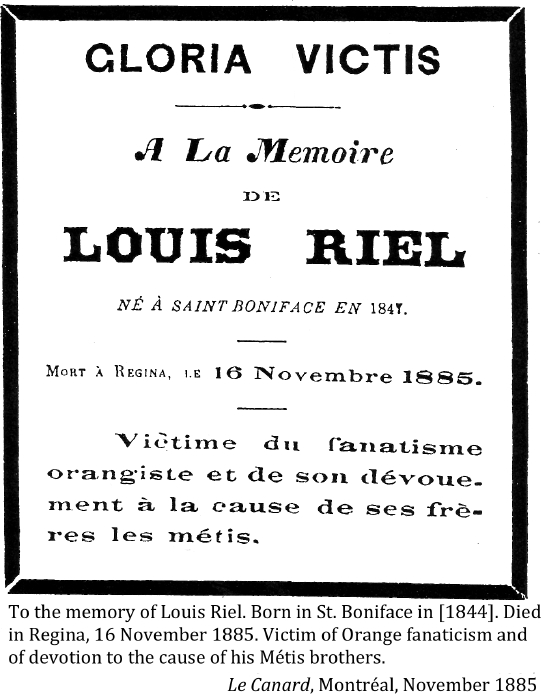 Nov. 16, 1885 "In memory of Louis David Riel":