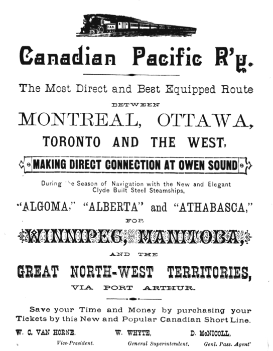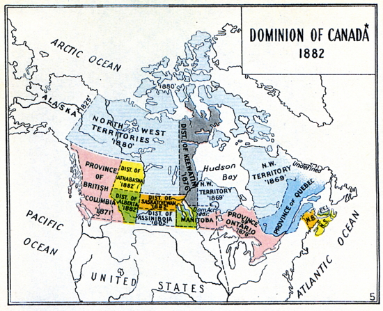 "The march of civilization in the North West then began (1869-70), and today, instead of being a vast hunting ground and wilderness, it is the home of thousands of thrifty settlers, and with its great transcontinental railway from ocean to ocean, placed Canada in the proud position of being one of the brightest jewels of the British Crown."