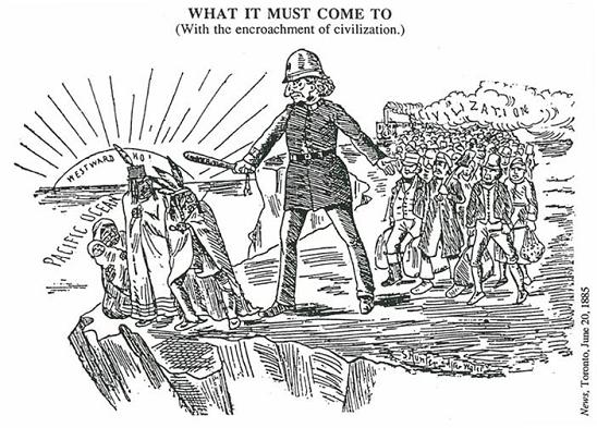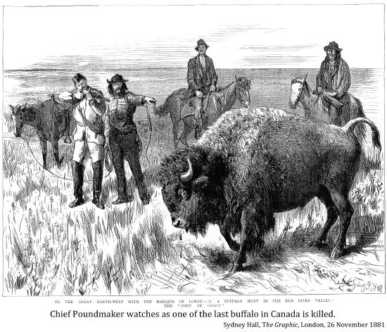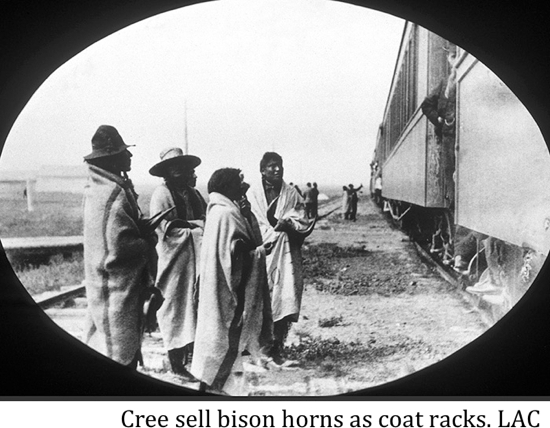 "At the very same time that the buffalo were reduced to extinction by over-hunting, European Canadians began to move rapidly across the flat and treeless prairies in a way that hadn't been possible in the more challenging terrain of the eastern US and Canada; right after them came railways, liquor supplies, towns and weapons the Indians could never match. Virtually overnight, an entirely new, technology-based socio-economic order enveloped the Indians' way of life, threatening to send it the way of the buffalo. . . It is not easy to identify any people anywhere who have had to cope with so complete and swift an extinction of their way of life. . . this is the great tragedy of Canadian history."