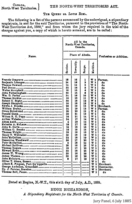 "Since the conviction of Big Bear I have felt that it is almost a hopeless task to obtain from a jury in Regina a fair consideration of the case of an Indian."