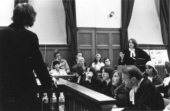 McPherons Park Junior Secondary School, Mock Trail of Louis Riel, New Westminster Court, photo Mark Van Manen, 1977