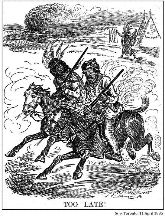 "The cause of the discontent [in 1885] is no secret to any person living in the North-West. Promises made when the Indians were strong and the whites weak are not carried out now that the whites have become strong and the Indians weak."