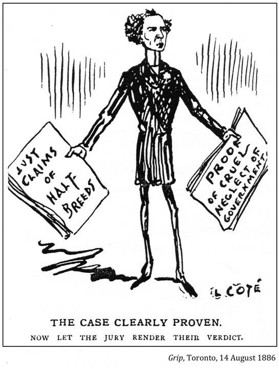 "It is abundantly clear that both half-breeds and Indians have suffered great injustice at the hands of the miscreants in power at Ottawa and their thievish emissaries. The half-breeds have been refused lands and have seen the tide of settlement flowing in around them on every hand, and the land being taken up by corporations and speculators, while they are in danger of being ousted from their homes and driven forth as outcasts from their place of birth. And the Indians have been systematically starved and robbed of their rations and annuities by the party hacks appointed as Indian agents and instructors. It is no wonder, that finding their repeated petitions and complaints discarded, they finally resorted to arms as the only means left them of obtaining redress for their wrongs. . . The poor Indians and half-breeds have not votes, so their appeals for justice have been contemptuously disregarded."