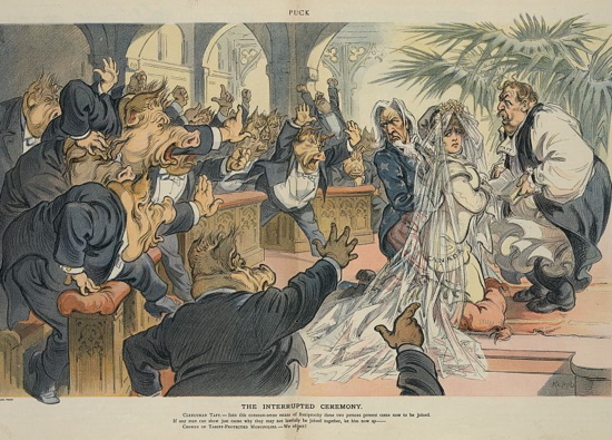 Keppler, The interrupted ceremony, Puck, New York, 8 March 1911, Library of Congress LC-DIG-ppmsca-27717