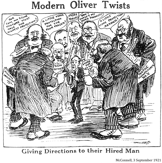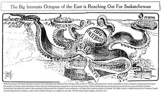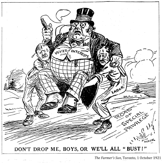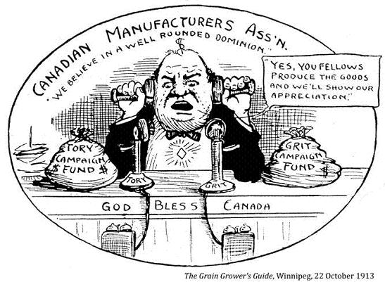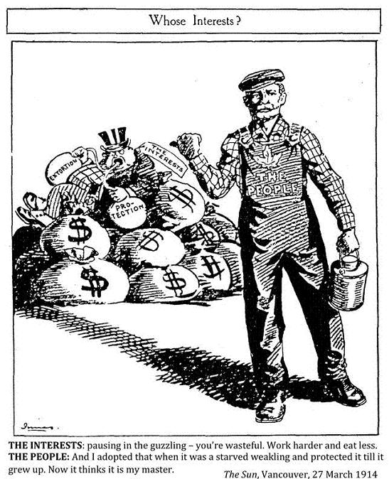 "When the workers of Canada wake up they will find that Protection is only one among the several economic fangs fastened in their "corpus vile" by the little group of railroad men, bankers, lumbermen and manufacturing monopolists who own their country."