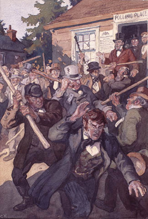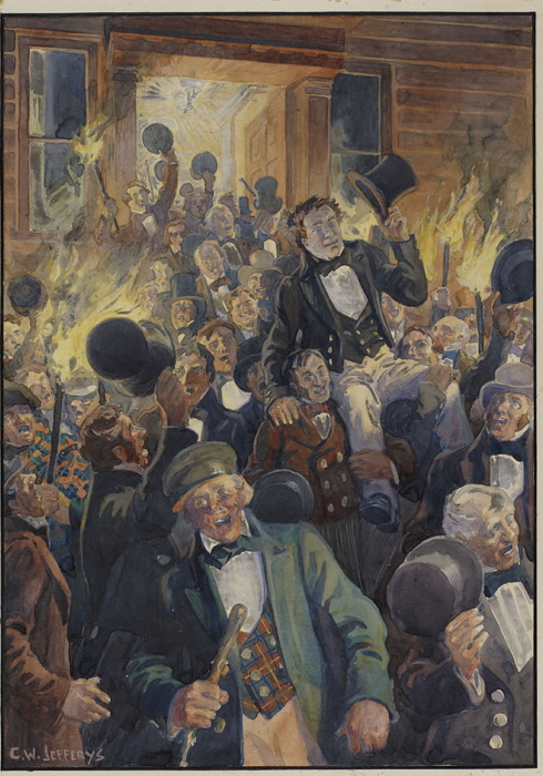 An election during the struggle of responsible Government. Une élection pendant la lutte pour un gouvernement responsable. LAC, 1972-26-1384, Charles Jefferys ca. 1925