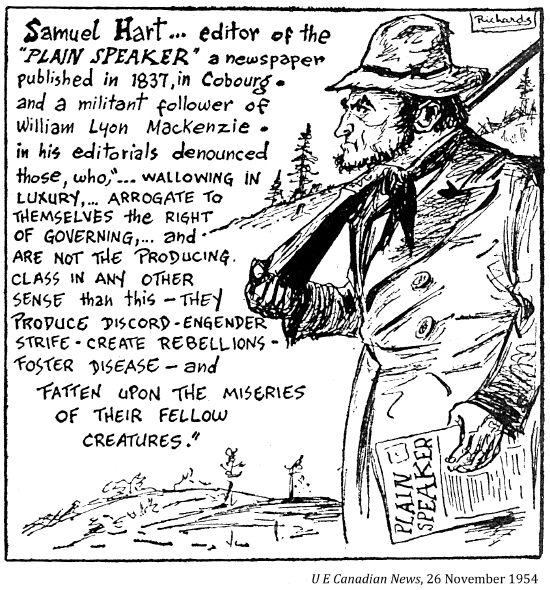 "The backwoodsman, while he lays the axe to the root of the oak in the forests of Canada, should never forget that a base basswood is growing in his native land, which, if not speedily girdled will throw its dark shadows over the country and blast its best exertions. Look up, reader, and you will see the branches – the Robinson branch, the Powell branch, the Jones branch, the Strachan branch, the Boulton twig, etc. The farmer toils, the merchant toils, the labourer toils, and the Family Compact reap the fruit of their exertions."