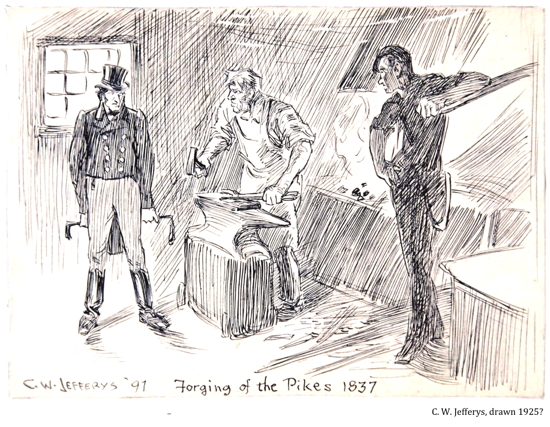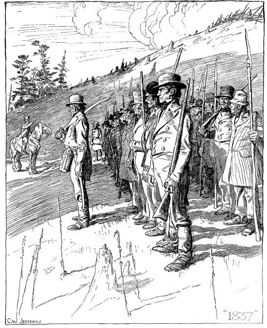 Rebels drilling in North York in autumn, 1837. LAC, Acc. No. 1961-29(34). Charles W. Jefferys, 1920s or 1930s?