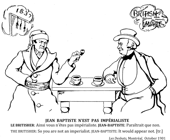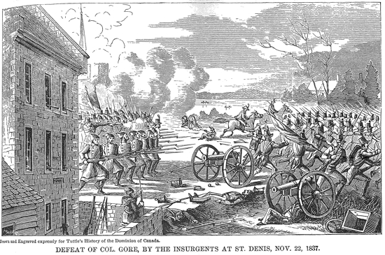 "Is there a man amongst us who forgets that when Papineau was struggling for the rights of his race and for the constitutional liberty which we today enjoy, his principal coadjutors were John Nelson, the Scotsman, and O'Callaghan, the Irishman! . . . [or] when the peasants of St. Denis took up arms and faced the veterans of Waterloo, their commander was not a Canadien but an Englishman named Wolfred Nelson? And three days afterwards, when these same peasants were swept with the leaden hail at St. Charles, can it be forgotten that the man who again led them was an Englishman named Thomas S. Brown. "