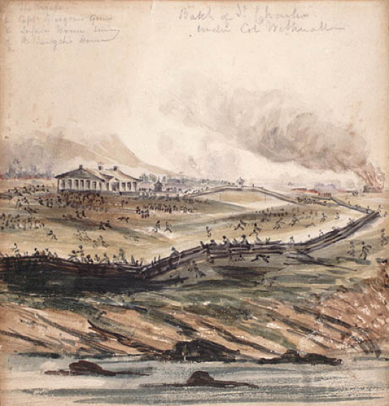 Battle of Montgomery's Farm. Bataille de la ferme Montgomery. LAC Acc. No. 1990-553-742, 1862