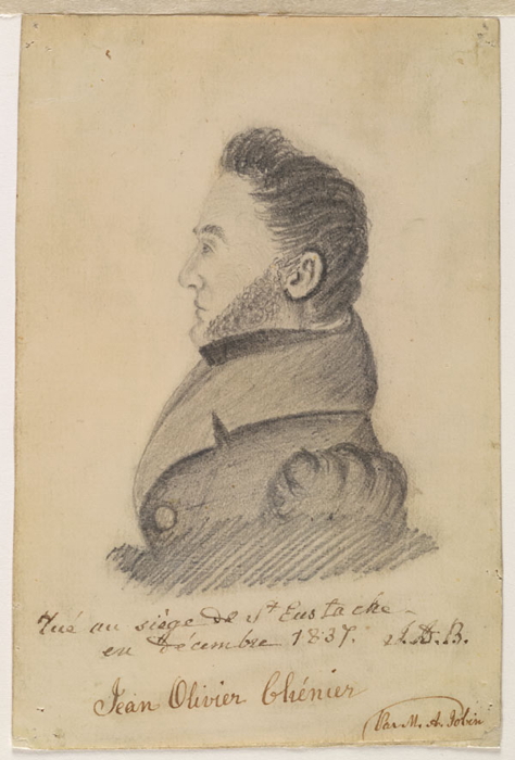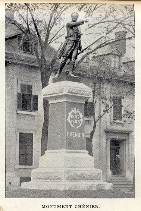 A musket ball hit Chenier in the chest. He died facing the enemy, J. Massicotte