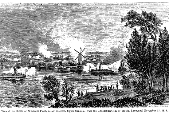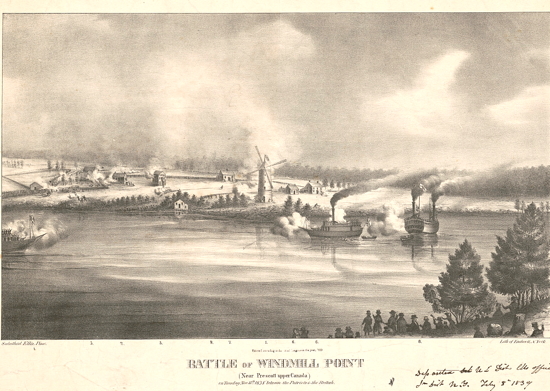 Battle of Windmill Point (near Prescott upper Canada) on Tuesday Nov. 13th 1838 between the Patriots and the British, George Endicott, New York, Library of Congress LC-DIG-pga-06271, 1839