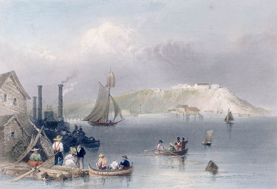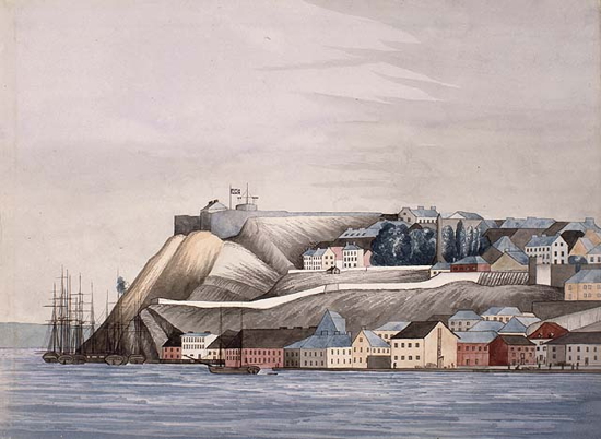 Citadel of Kingston, (from the St. Lawurence). Vue de la Citadelle de Kingston, depuis le Saint-Laurent, Kingston. LAC, Acc. No. 1970-188-867 W.H. Coverdale Collection of Canadiana, Robert Brandard 1841