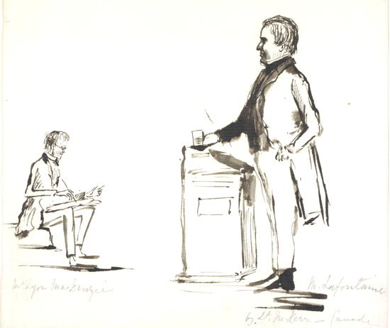 [Caricature Sketch of Louis-Hippolyte Lafontaine and William Lyon Mackenzie]. LAC, James Bruce, 8th Earl of Elgin, and family fonds (R977). Lord Mark Kerr 1849-1851