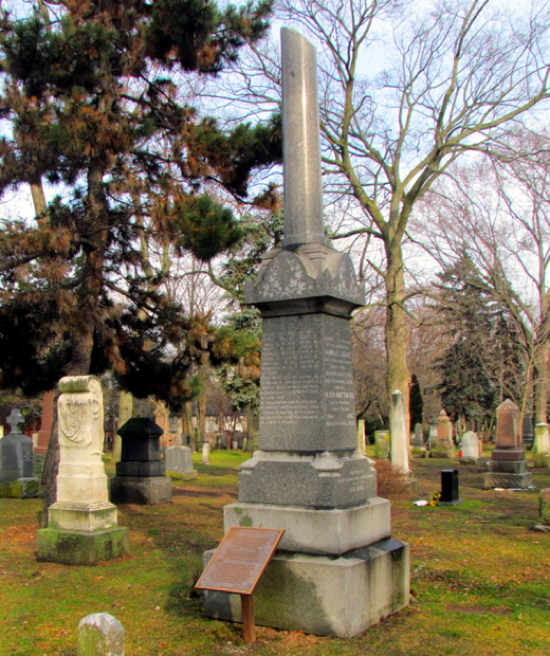 Inscription, monument erected to honour Peter Mathews and Samuel Lount, St. James Cemetery, Toronto, 1893