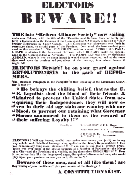 Electors Beware!! Toronto Reference Library 1836. Reform Alliance Society. SB