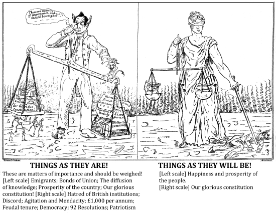 "Until my return from England in the fall of 1833, I used what little influence I possessed with the yeomanry to persuade them that by petitioning England, a remedy would be found to every wrong of which they had just reason to complain . . . But I have been in England – I have . . . seen enough to convince me that we shall continue to have the very worst possible government in Upper Canada until we get rid of the system which binds us to the earth. I therefore am less loyal than I was."