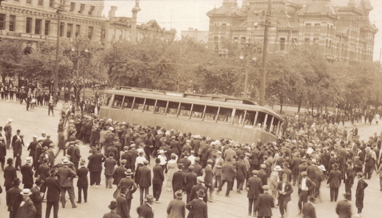 Overturning a Streetcar on Main Street, University of Manitoba, 21 June 1919