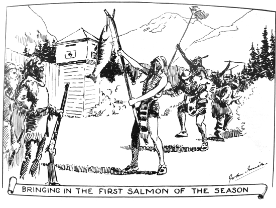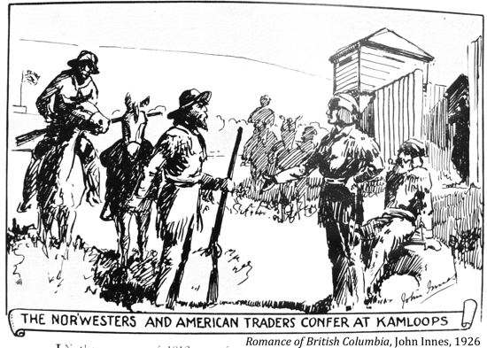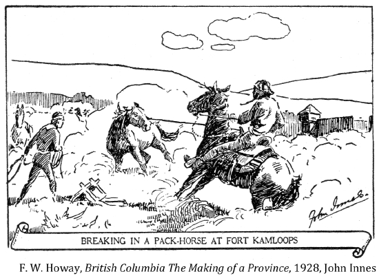 The Hudson's Bay Company Fur Brigade Passing Down the Okanagan, 1825-1847, John Innes, 1925 (see Fur Brigade theme)