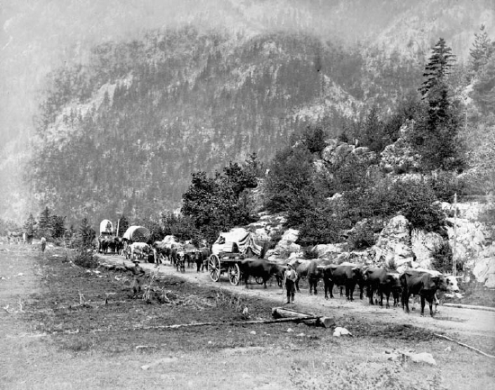 Teaming on Cariboo wagon road. LAC PA-023269, 1878-83