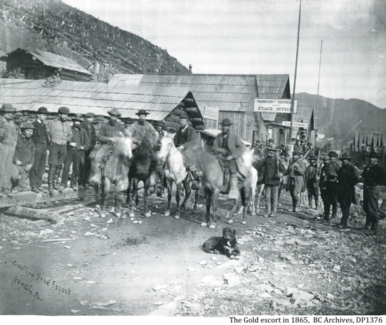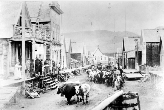 Main Street, Barkerville; cattle drive, 1875, BC Archives A-03787