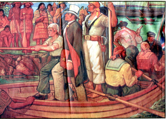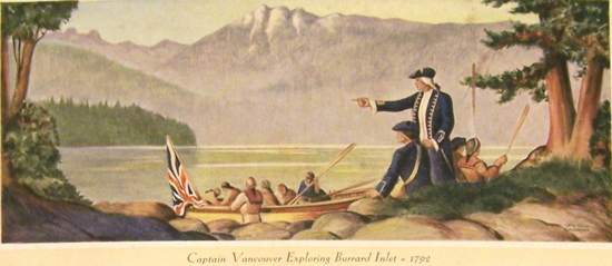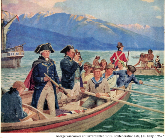 Captain George Vancouver Exploring Burrard Inlet, 1792, John Innes and George Southwell, 1925